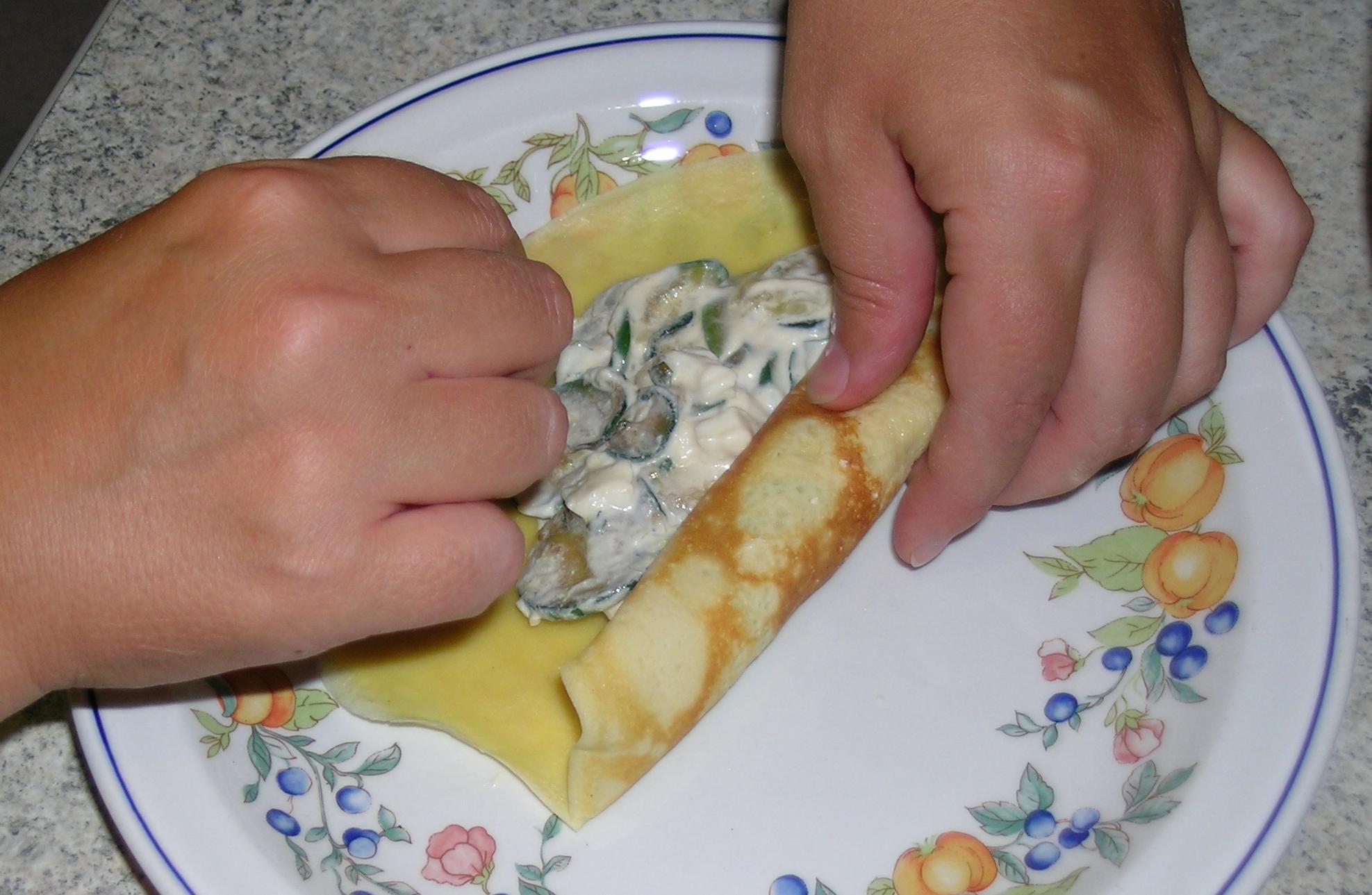 A questo punto il ripeno è pronto quindi bisogna disporlo sulle crespelle, che devono poi essere