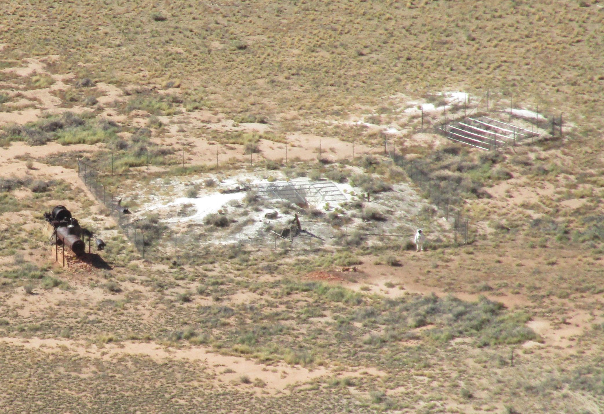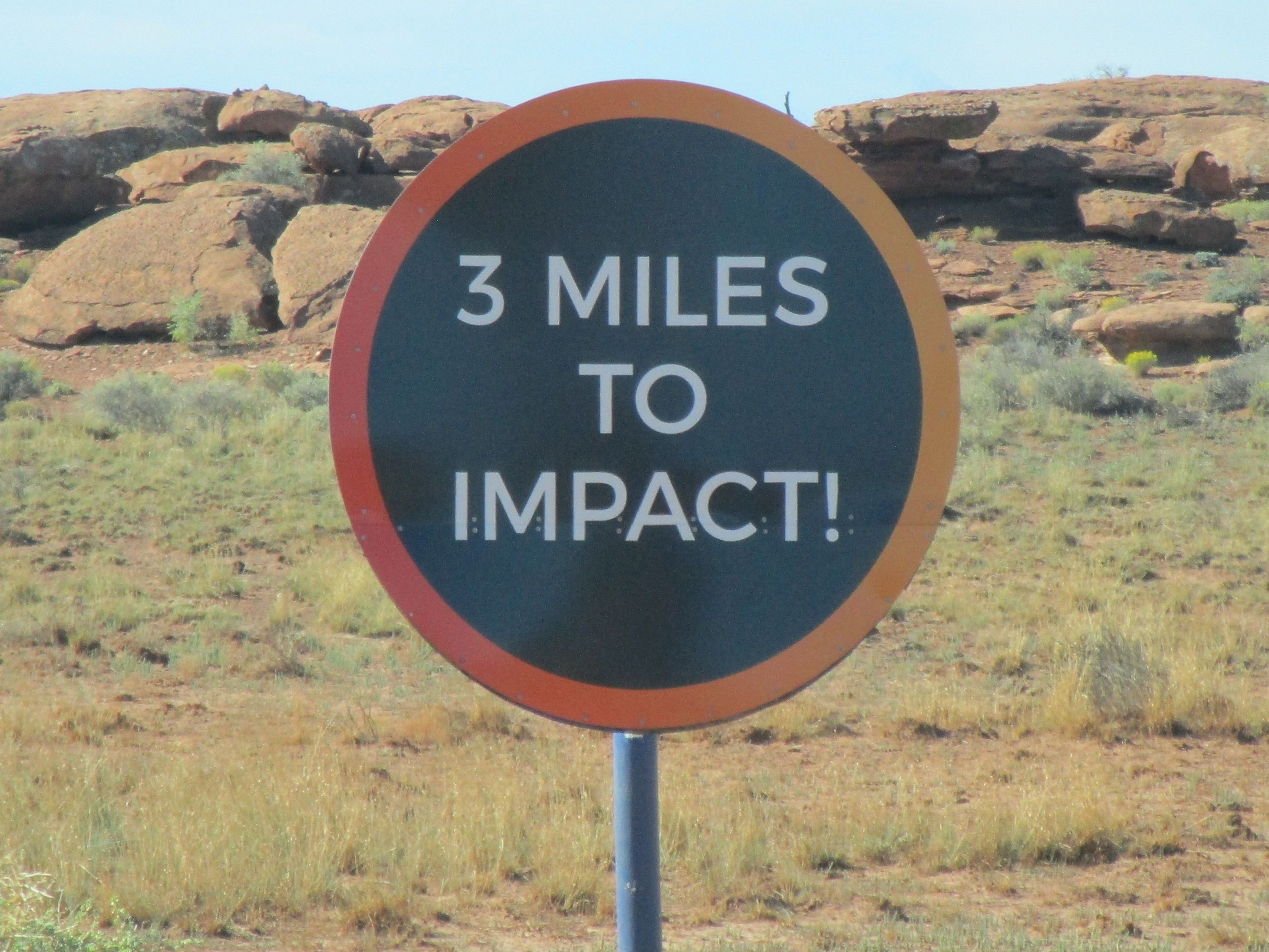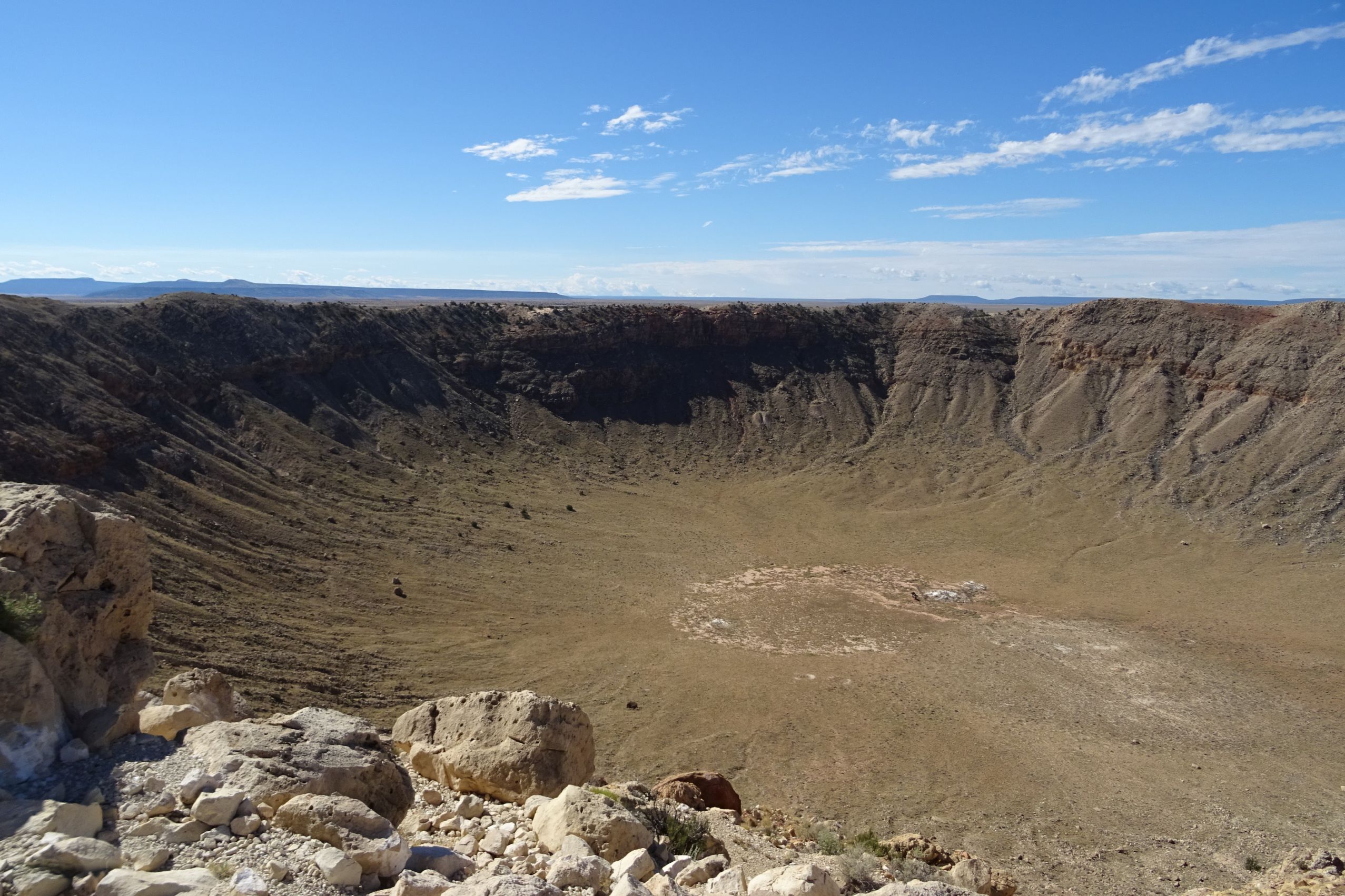 Al centro del cratere è appena visibile un manichino di astronauta. Infatti durante gli anni 1960/70 il fondo del Meteor Crater fu usato per