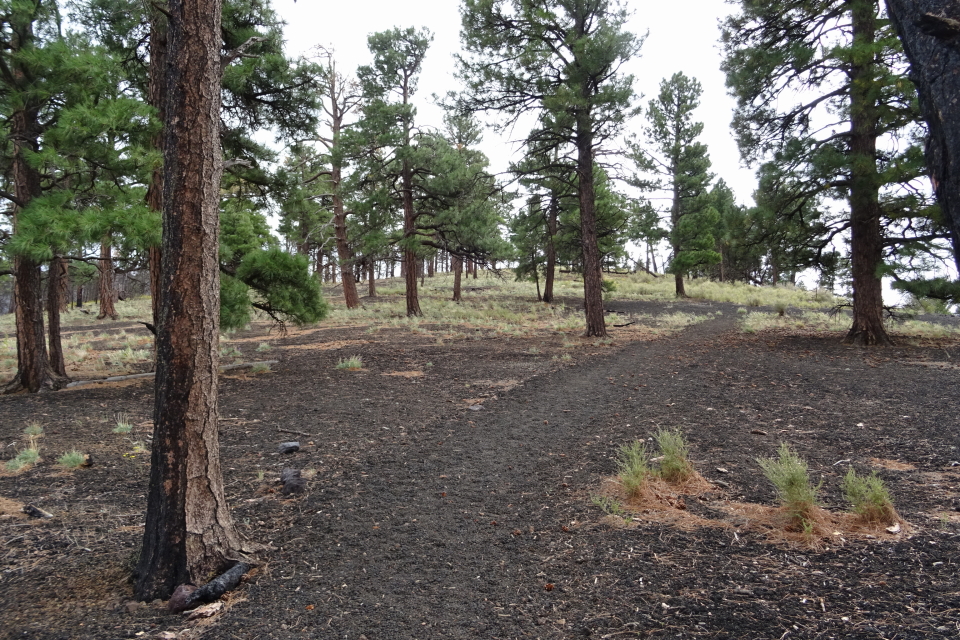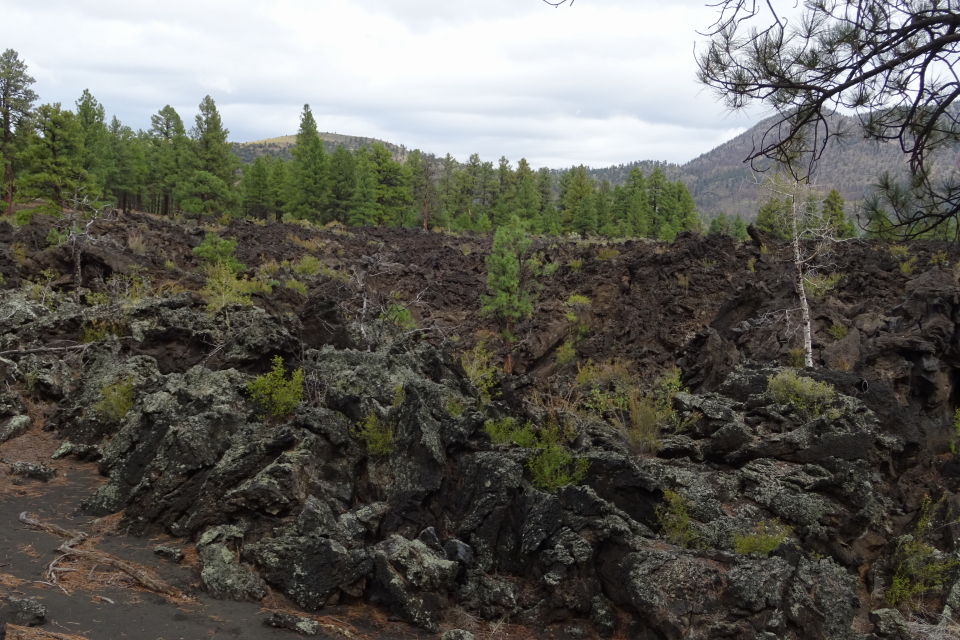 Prima si attraversa un boschetto di pini "ponderosa", poi come dice il nome del sentiero si costeggia il bordo della colata "Bonito Lava Flow".