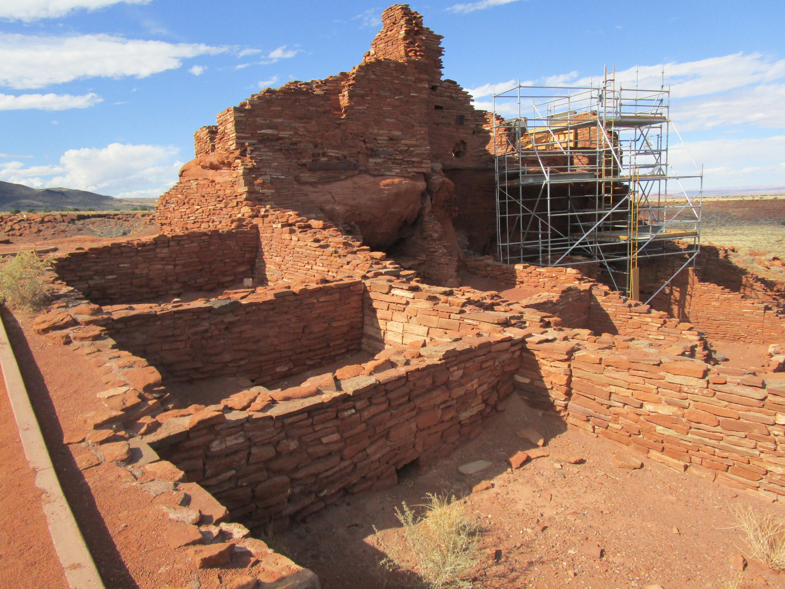 eruzioni vulcaniche dei Sunset Crater. Sono costruite con mattoni ricavati dall'abbondante arenaria circostante.