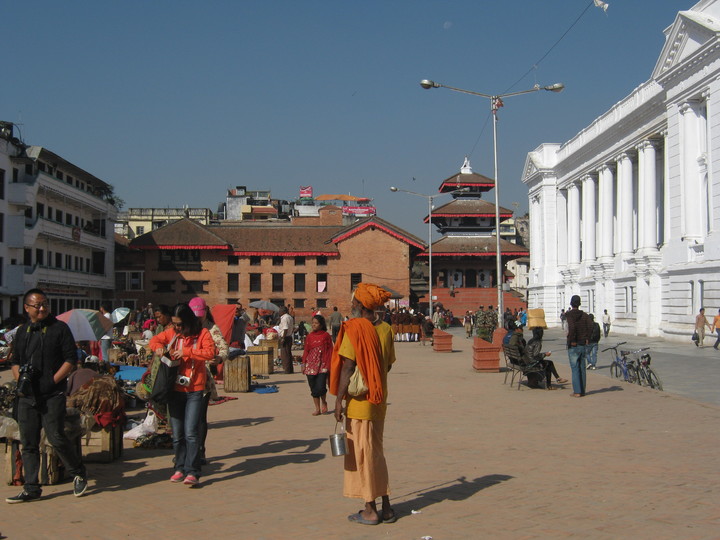 Percorrendo la New Road entro quindi in Durbar square da est, in un'ampia area con a destra il bianco edificio dell'ex Palazzo
