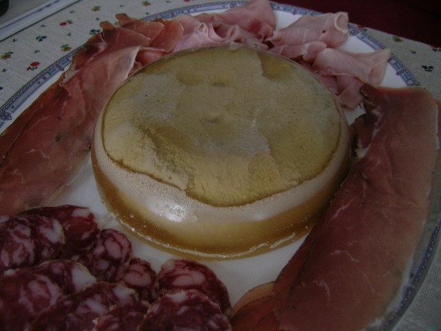 Trascorsi circa 30-40 minuti, il tempo necessario per far consolidare il fondo della gelatina, adagiate su quest'ultimo il composto che avrete tolto dallo stampo e ricoprite con la gelatina rimanente tenuta a temperatura ambiente. Riponete il tutto in frigorifero.